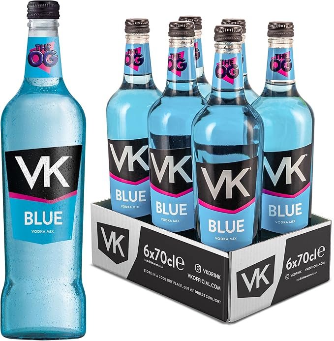 VK Alcopop Bottles 6 x 70cl – Big Bottles X6 – Vodka – Pre Mixed & Ready to Drink – 3.4% ABV – Party Drink – Maximum Flavour Sparkling Vodka Drink (Apple & Blackcurrant)